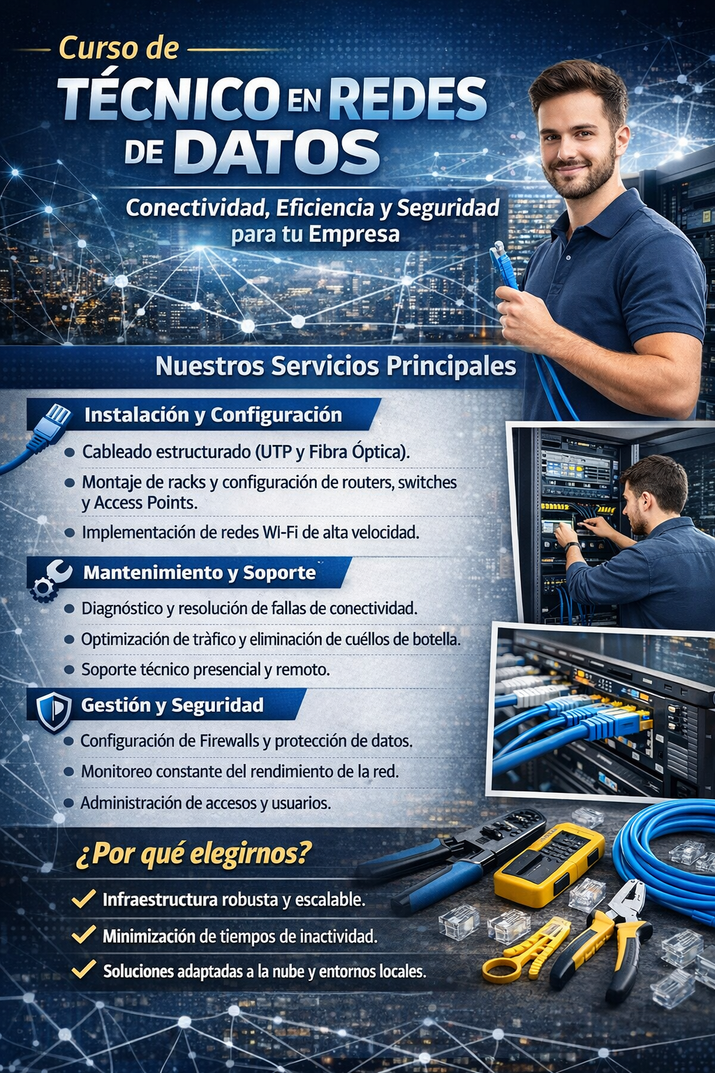 - Mantenimiento de la conectividad física de redes de datos locales.